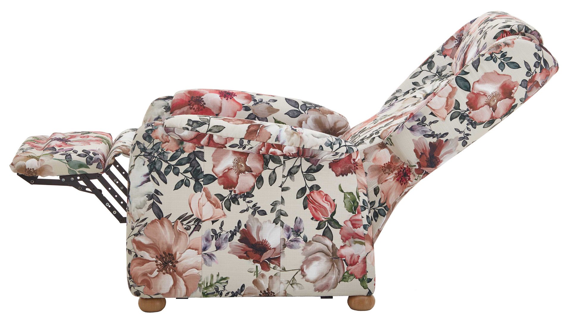 Dank der legeren Federkernpolsterung auf hochwertiger Wellenunterfederung im Sitz sowie der Schaumpolsterung im Rücken sitzen Sie auf dem floralen Ohrenbackensessel der Ergonomiegröße M sehr bequem. Dazu tragen auch die verschiedenen Funktionen bei. Der TV-Sessel bietet die manuelle Kopfpolsterverstellung mit Rastbeschlag und Rückholfeder und ermöglicht überdies die manuelle Verstellung der Rückenlehne und des Fußteils bis zur Liegeposition. Im komplett ausgefahrenen Zustand beträgt die Liegelänge ca. 176 cm.
