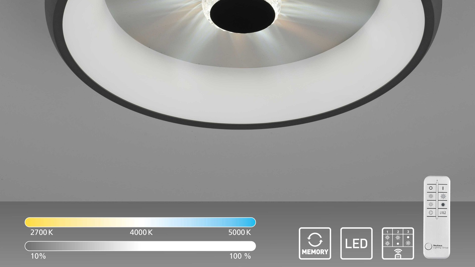 Innen- und Außenring separat steuerbar über Fernbedienung