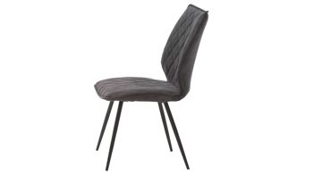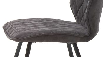 Der Polsterstuhl Navarra kommt in einem ausdrucksstarken Design: Sitz- und Rückenfläche weisen eine dekorative Rautensteppung auf. Sie werden rundum von einem Stoffbezug im Antiklook umhüllt. Der Bezug in gedecktem Anthrazit trifft auf ein ebenfalls anthrazitfarben lackiertes und konisch zulaufendes Rundrohrgestell.