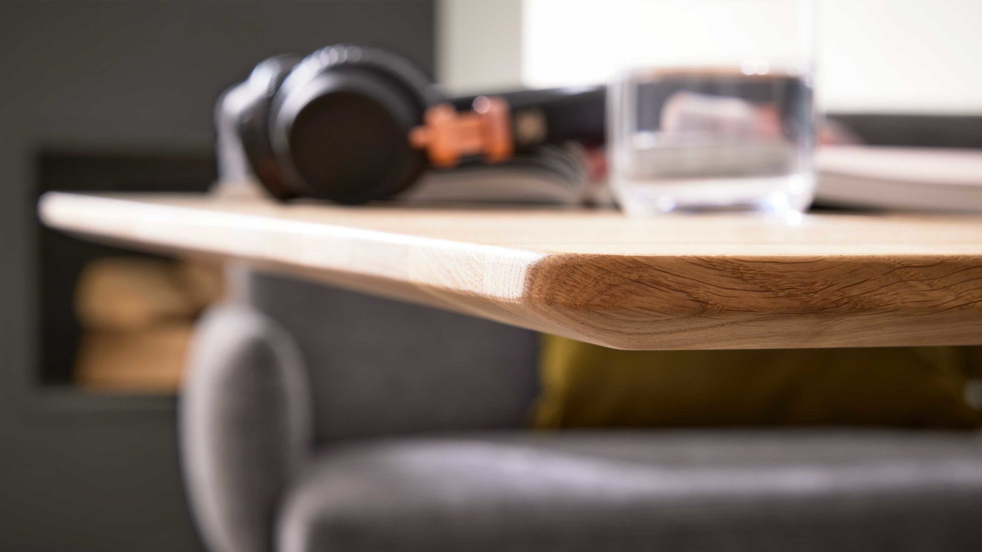 Die Tischplatte aus massiver Charakter-Eiche zeichnet sich durch ihre markante Maserung und warme Ausstrahlung aus. Mit einer Plattenstärke von ca. 13 mm wirkt sie elegant schlank und modern, während die Facettenkante für ein feines, hochwertiges Finish sorgt. Massivholz ist nicht nur optisch ein Highlight, sondern auch besonders langlebig und pflegeleicht. Die Oberfläche ist robust, widerstandsfähig und behält ihren natürlichen Charme über viele Jahre hinweg – perfekt für ein Möbelstück, das täglich genutzt wird.
