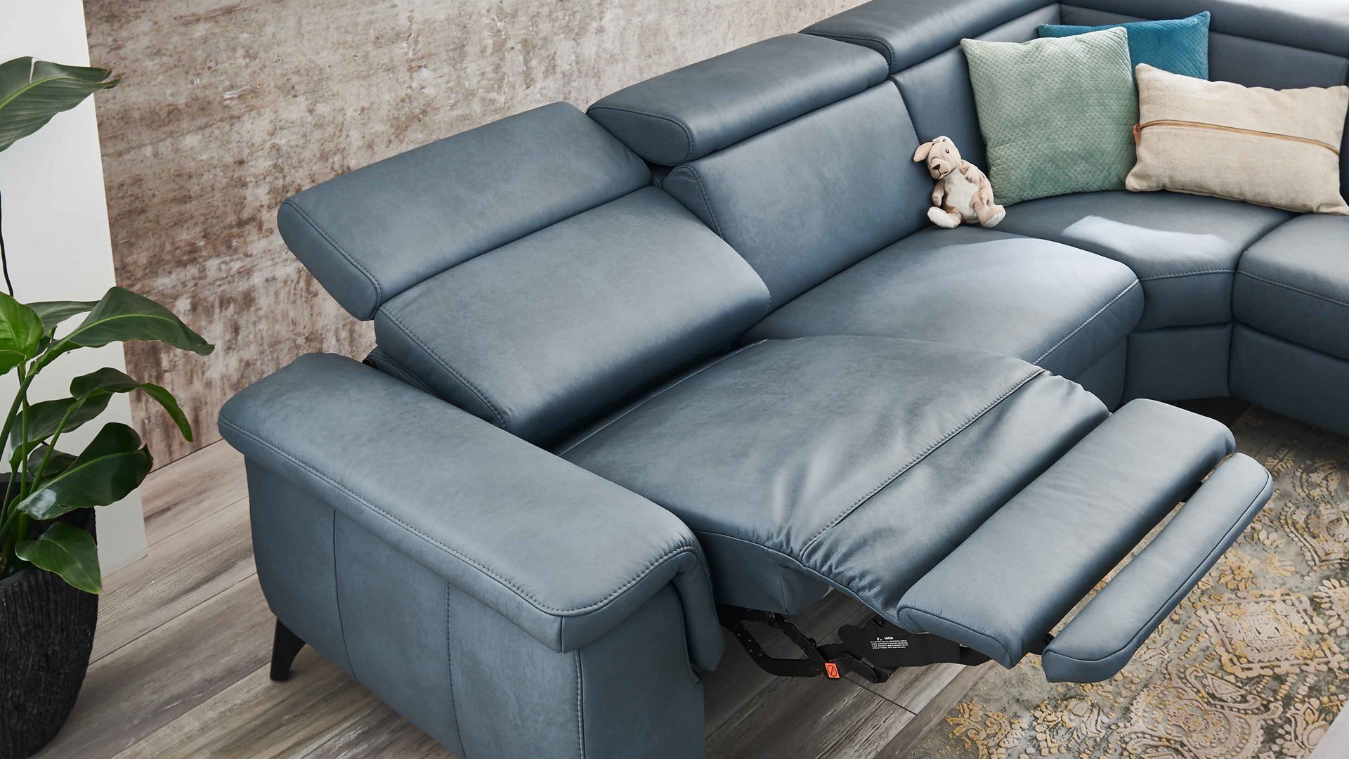 Über zwei Motoren und mittels Kabel-Handschalter lassen sich Rückenlehne, Sitz und Fußstütze des jeweiligen Polstermöbels auf Knopfdruck stufenlos verstellen. In der Endposition können Sie Ihre Beine komplett ausstrecken und beim Fernsehen oder Lesen auf dem Sofa besonders entspannt sitzen.