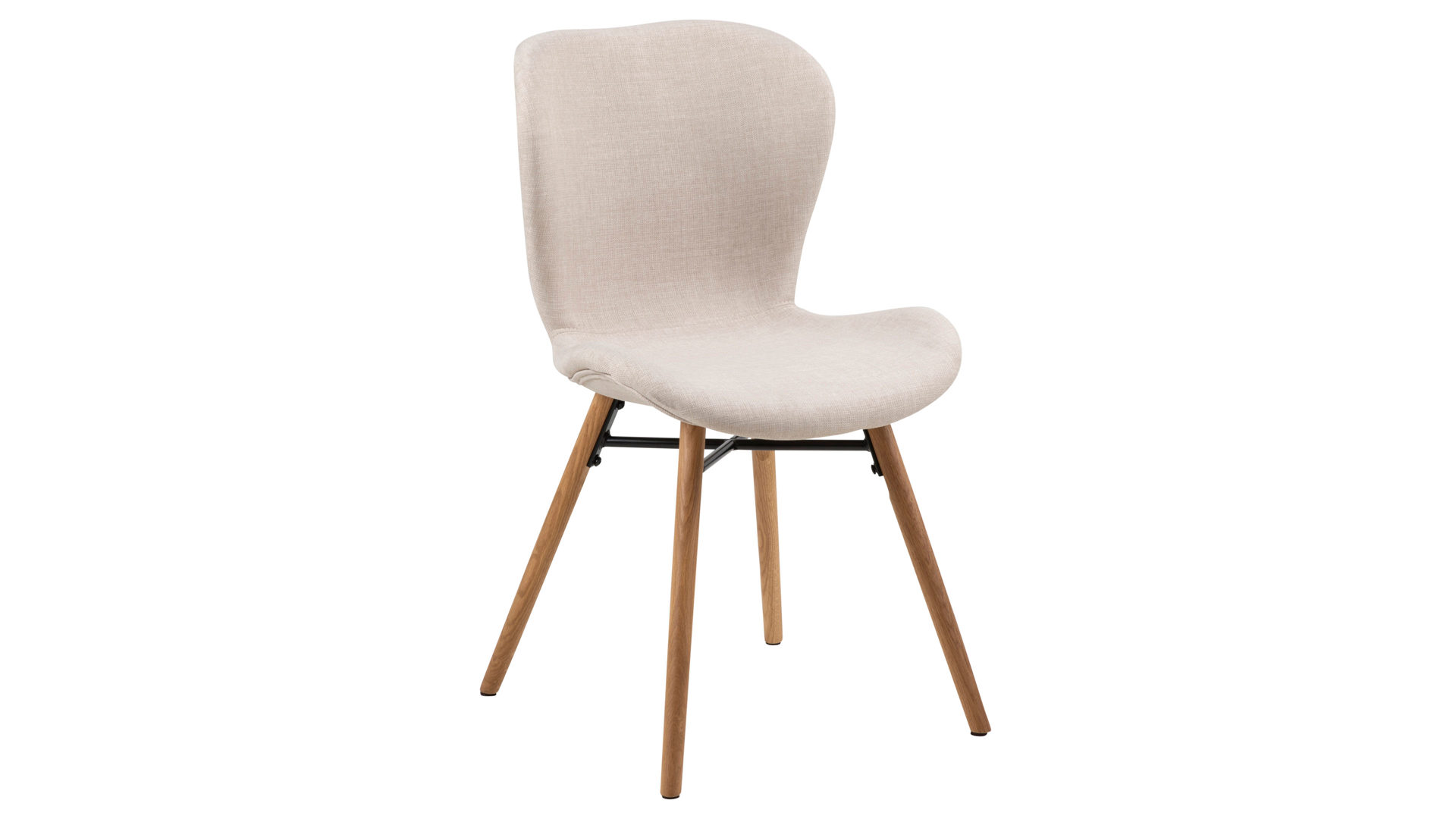 Der Vierfußstuhl verbindet schlicht-moderne Eleganz mit ausgewählten natürlich-warmen Details. Vier geölte Eichenholzfüße bilden die stabilisierende Basis - sie strahlen einladende Gemütlichkeit aus. Das schwarz lackierte Metallkreuz, das die Füße robust zusammenhält, sorgt für einen attraktiven Hell-Dunkel-Kontrast und setzt damit einen herrlichen Akzent. Bezogen ist der hochwertig verarbeitete Stuhl mit Flachgewebe in feinster Sandfarbe. Ein weiteres visuelles Highlight ist die umlaufende Ziernaht.
