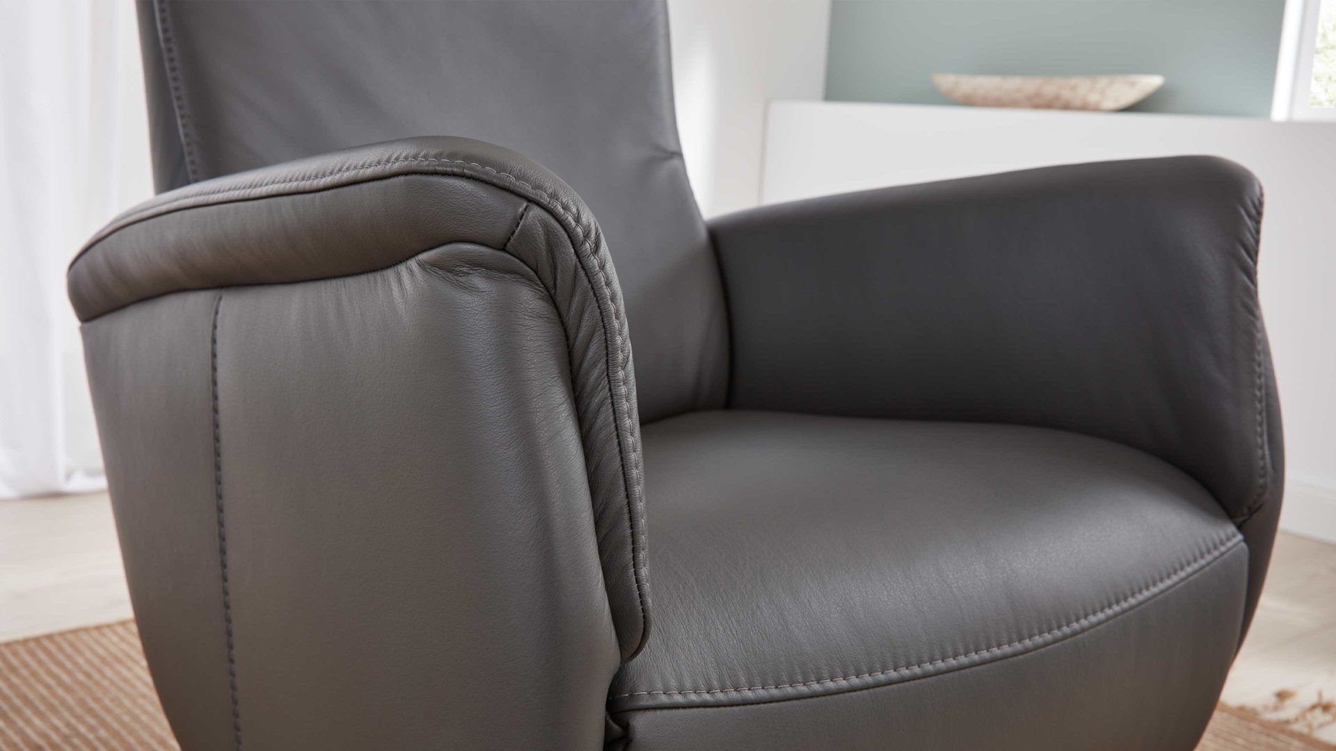 Dank der hochwertigen Polyätherschaumpolsterung auf einer Wellenunterfederung, der ergonomischen Rückenlehne C, den Vollpolster-Armlehnen 2 und der angenehmen Haptik des feinen Leders genießen Sie auf dem Fernsehsessel hohen Sitzkomfort.