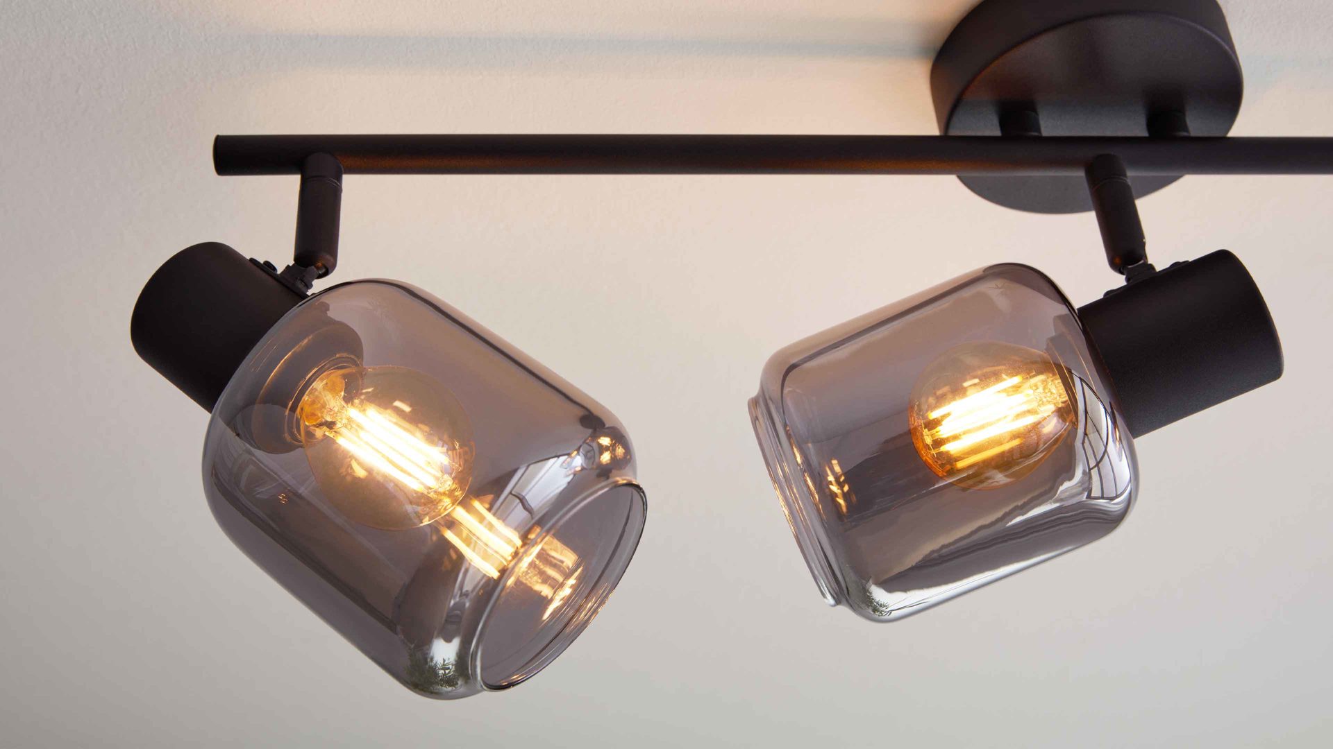 Die Decken-Spotleuchte (Typ IL80221132) aus der Interliving Leuchten Serie 9341 kombiniert modernen Industrie-Look mit zeitloser Eleganz. Das mattschwarze Metallgehäuse und drei schwenkbare Rauchglas-Schirme mit Spiegeloptik setzen markante Akzente an der Decke. Ob im Wohnzimmer, Flur oder Homeoffice – diese Leuchte sorgt für ein stilvolles Ambiente mit gezielten Lichtpunkten.