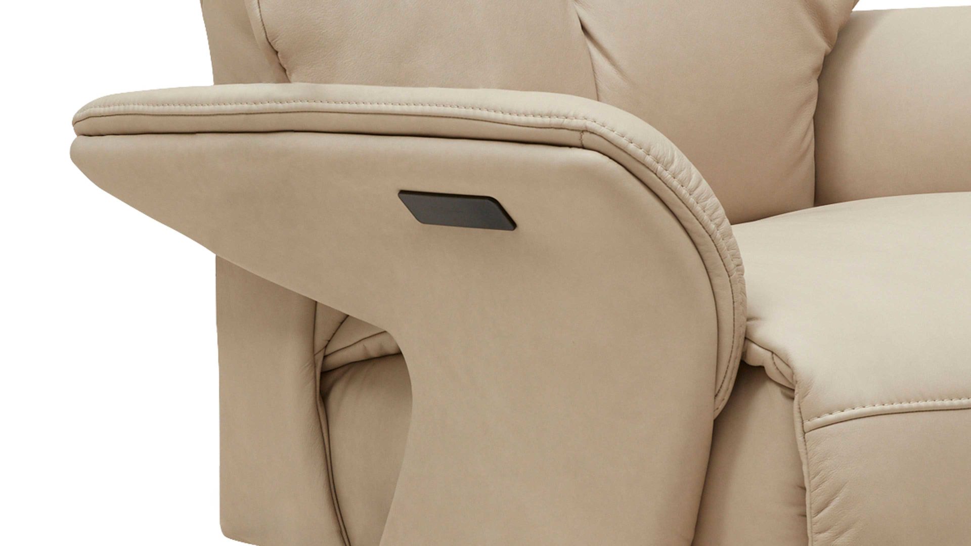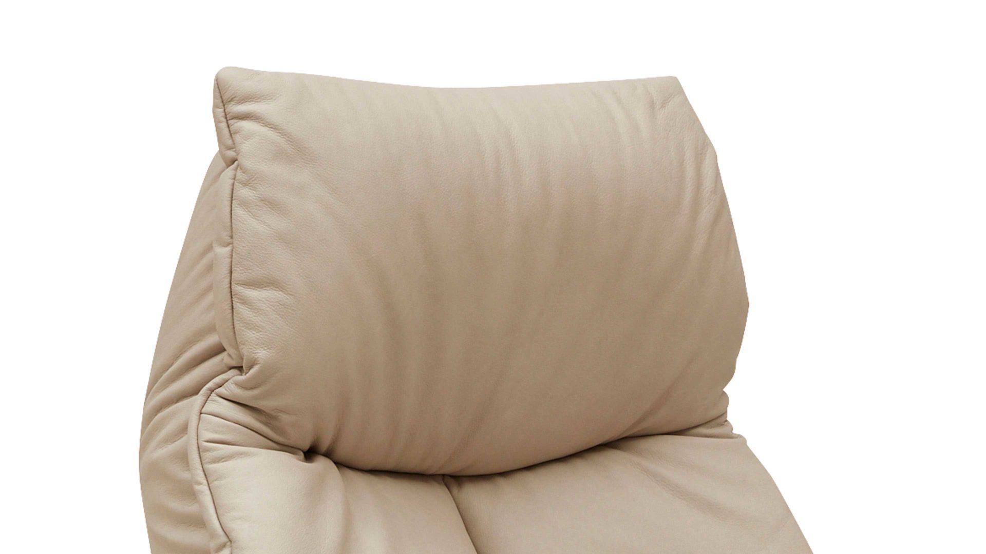 Der Drehsessel aus der Interliving Sessel Serie 4562 verbindet elegantes Design mit höchstem Sitzkomfort. Mit seinem klifffarbenen LongLife-Lederbezug und dem Tellerfuß in biancofarbener Wildeiche mit edelstahlfarbenem Akzent setzt dieser Relaxsessel stilvolle Akzente in deinem Wohnbereich – edel, natürlich und modern zugleich.
