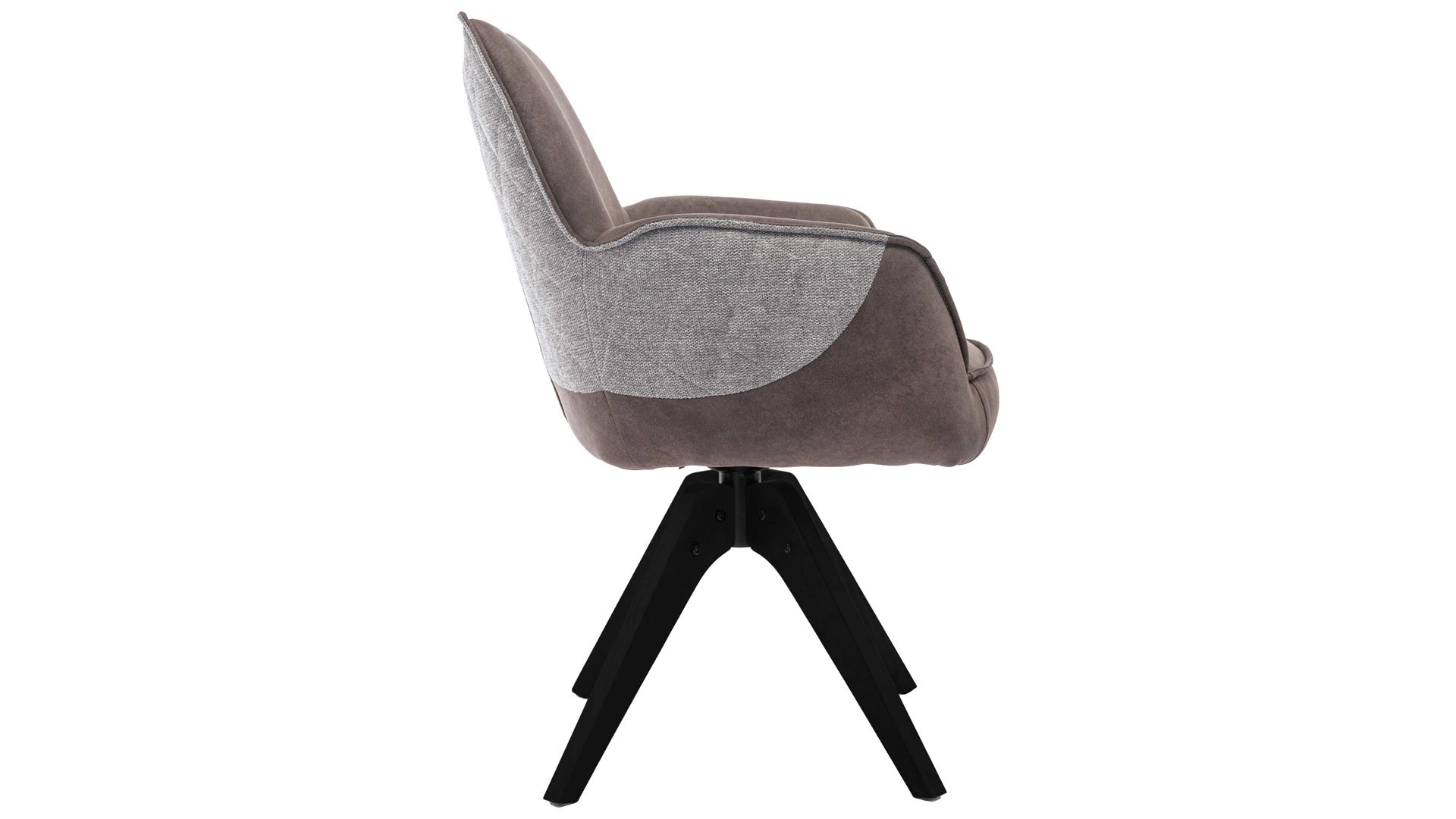 brauner Stoffbezug im Antikleder-Look, kombiniert mit beige-braun meliertem Stoffbezug mit Rautensteppung und mattschwarzem Metall