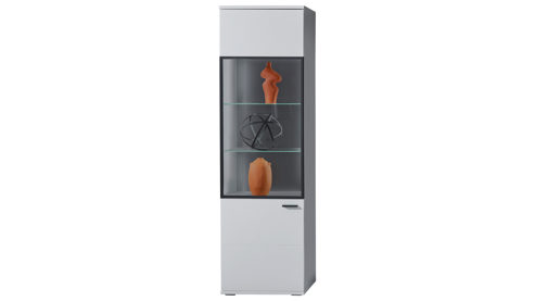 • Die Abbildung zeigt ein Wohnbeispiel, welches auch Dekoration sowie separat erhältliches Zubehör enthält. Im Lieferumfang enthalten ist eine Vitrine mit Deckboden-Beleuchtung.