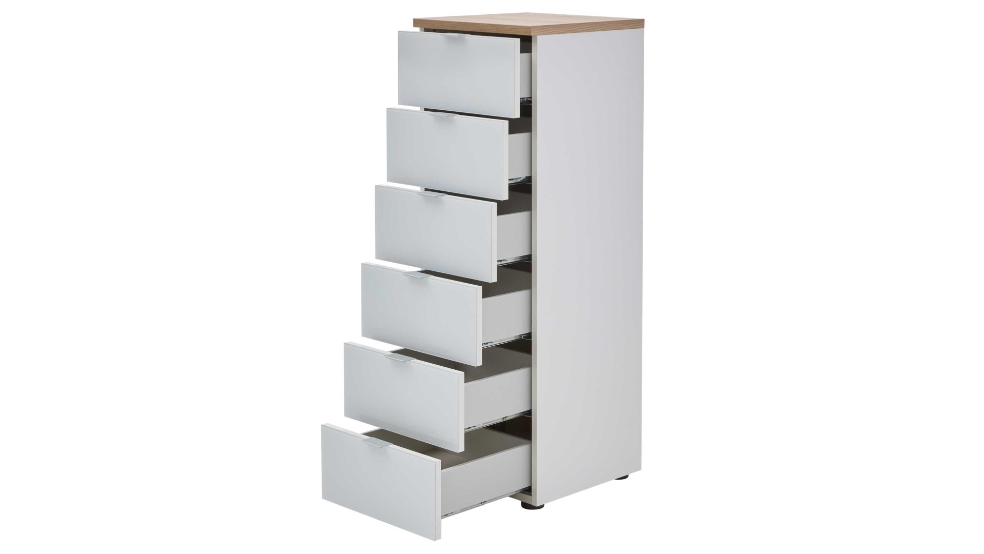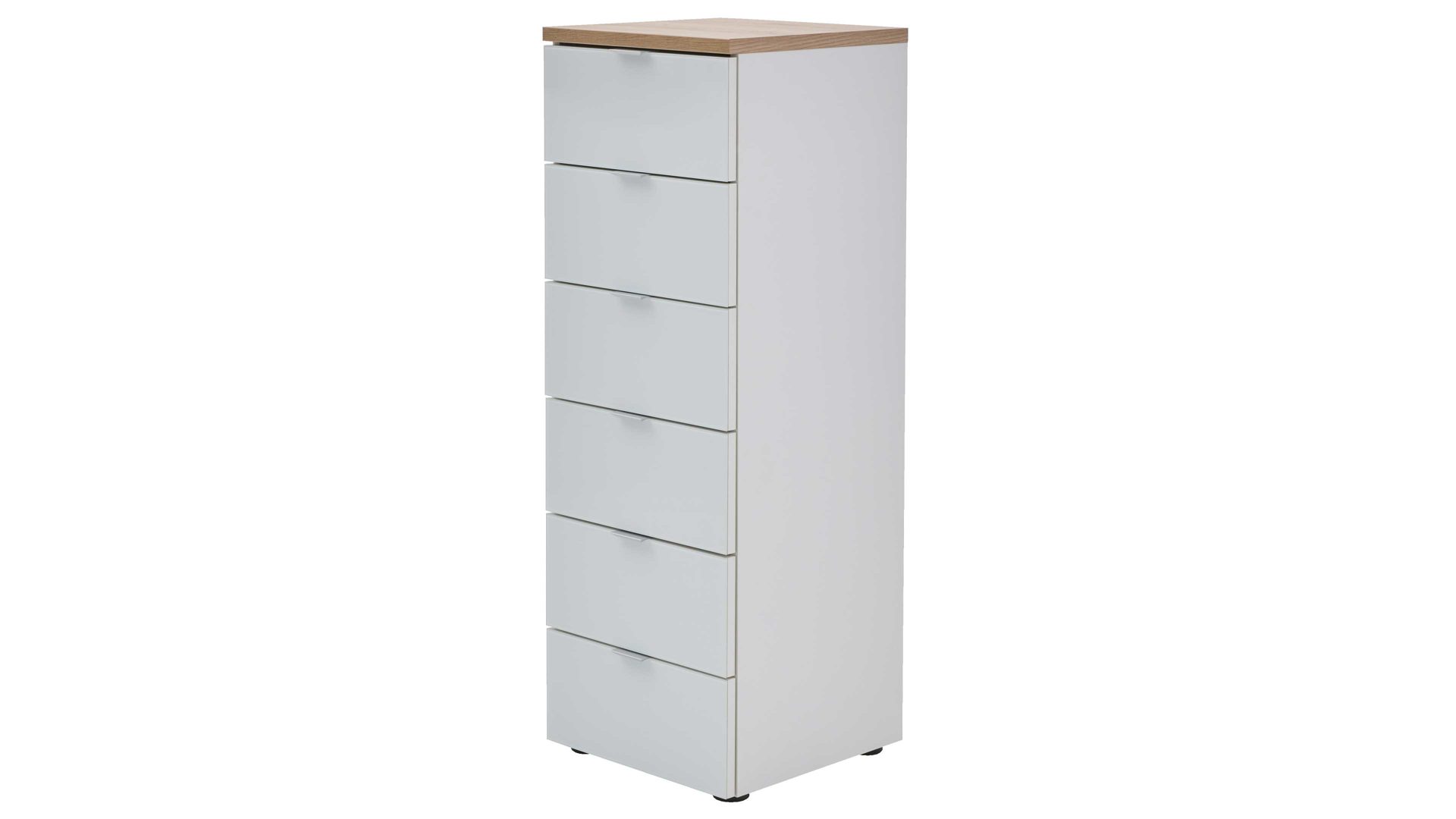 alpinweißes Glas & Artisan Eiche - sechs Schubladen, Höhe ca. 114 cm