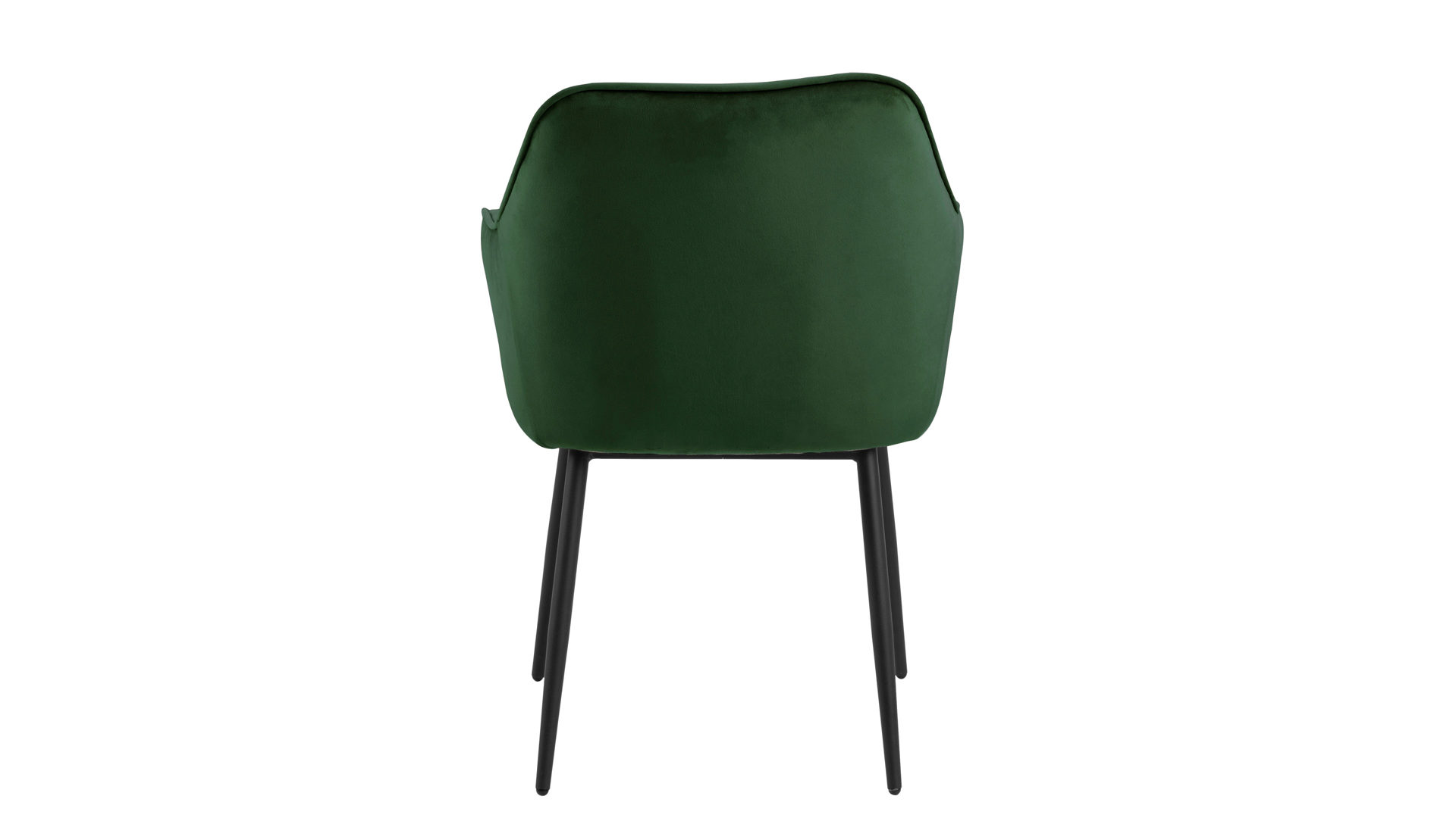 Dabei harmoniert der Polsterstuhl in seiner sanften Formensprache mit zahlreichen Einrichtungsstilen. Moderne Geradlinigkeit ergänzt er ebenso stimmig wie den beliebten Vintage-Trend. Auch farblich erlaubt der Esszimmerstuhl Brooke angenehme Freiheit beim Kombinieren: Dafür sorgt der waldgrüne Bezug Vic aus Samt, der die gesamte Sitzschale inklusive der bequemen Armlehnen weich umhüllt. Die rau pulverbeschichteten Metallfüße fließen in mattem Schwarz stimmig in das Gesamtbild ein.