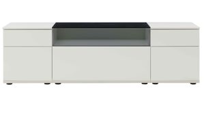 Das Lowboard aus der Interliving Wohnzimmer Serie 2031 ist die ideale Basis für dein Home-Entertainment. In mattem Tonweiß und mit grau getöntem Floatglas bringt es moderne Leichtigkeit und dezente Eleganz in dein Wohnzimmer. Die grifflosen Fronten mit Push-to-open-Funktion sorgen für ein klares, ruhiges Erscheinungsbild, das perfekt zu einem minimalistischen Wohnstil passt. Mit Maßen von ca. 180 x 54 x 45 cm (B/LxHxT) bietet das Lowboard ausreichend Platz für TV, Technik und Zubehör – und wird dabei zum echten Designhighlight.