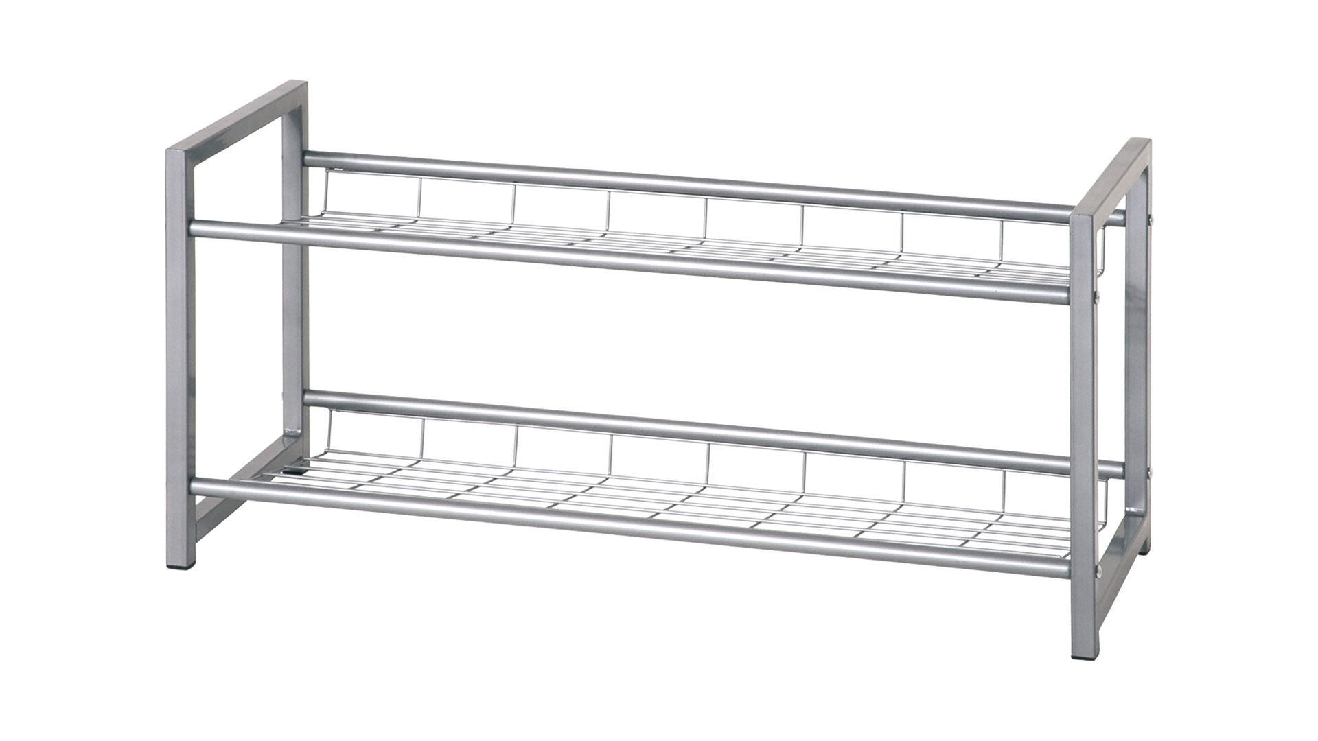 Das Schuhregal besteht aus Stahlrohren, die mit zwei Ablagerosten ausgestattet sind. Bis zu zwölf Paar Schuhe können aufbewahrt werden. Dank der kompakten Abmessungen von ca. 80 x 38 x 30 cm (BxHxT) lässt es sich nahezu überall platzsparend aufstellen und sorgt dafür, dass die Schuhe stets an ihrem Platz sind.