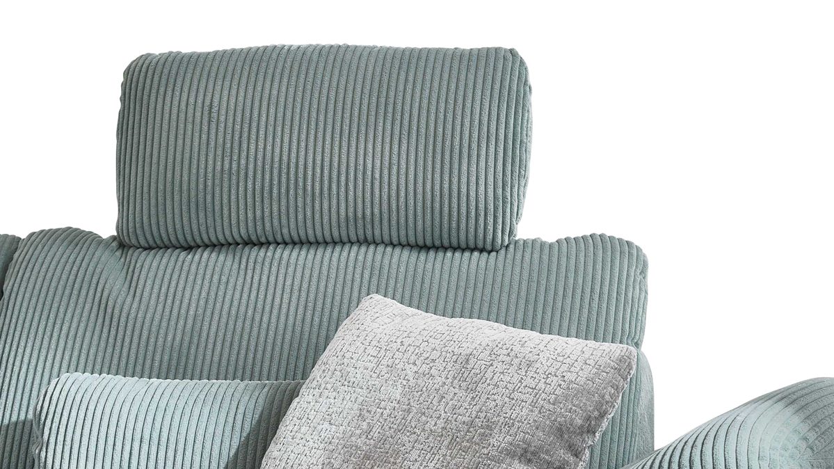 die Kopfstütze wird in die Kopfstützvorrichtung an der Rückenlehne des Sofas eingesteckt und lässt sich dann in der Höhe und in der Neigung manuell verstellen