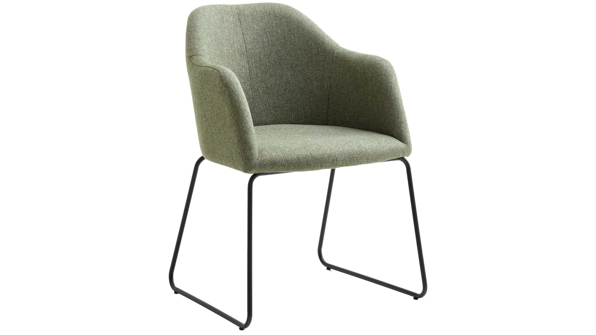 Er kombiniert ein mattschwarz lackiertes Stativgestell aus robustem Eisen mit einem lindgrünen Mikrofaserbezug in Lederoptik und fügt sich in verschiedene Wohnstile harmonisch ein. Zu den optischen Highlights des Esszimmerstuhls gehört neben der Formensprache und den perfekt aufeinander abgestimmten Farben der markante Quereinzug im Rücken. Praktisch begeistern die Drehbarkeit um 180 Grad mit Rückholfunktion sowie die bodenschonenden Gleiter am Gestell.