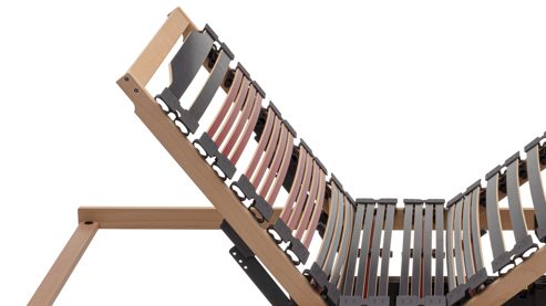 Zwei Leistentypen sorgen für optimalen Komfort: 13 breite Premium-Federleisten aus 5-fach verleimtem Buchenholz (ca. 36 mm breit, oberflächenveredelt) sind ideal für Nutzer bis 130 kg, während 28 schmale, hochelastische Federleisten in Schulter-, Lordose- und Beckenzone für präzise Körperanpassung sorgen. Eine breite Endleiste stabilisiert die Matratze und sorgt für gleichmäßigen Liegekomfort.