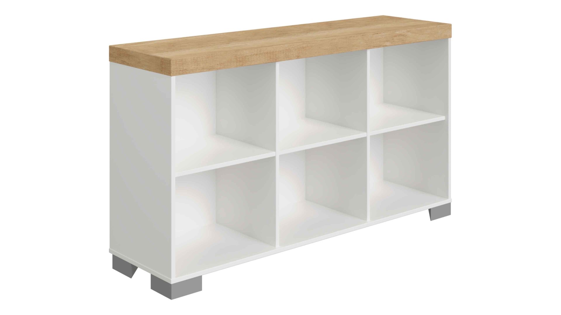 Mit sechs geräumigen offenen Fächern verstaut das Sideboard etwa die Babyausstattung oder das Spielzeug dekorativ. Die praktische und schicke Kommode ist made in Germany und misst ca. 135 x 77 x 38 cm (BxHxT). Sie lässt sich hervorragend mit anderen Stücken aus dem Möbelprogramm PAIDI Kira kombinieren.