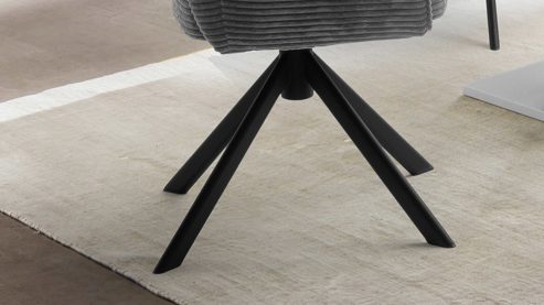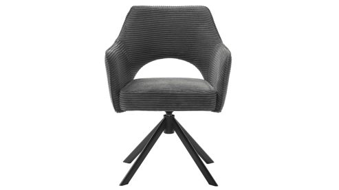 anthrazitfarbener Breitcordbezug und rundes, konisch zulaufendes, mattschwarzes Metallgestell