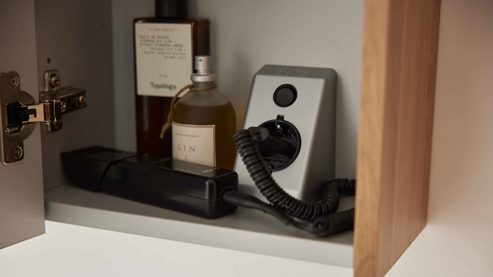 • Die Abbildung zeigt ein Wohnbeispiel, welches auch Dekoration sowie separat erhältliches Zubehör enthält. Im Lieferumfang enthalten ist ein Spiegelschrank.