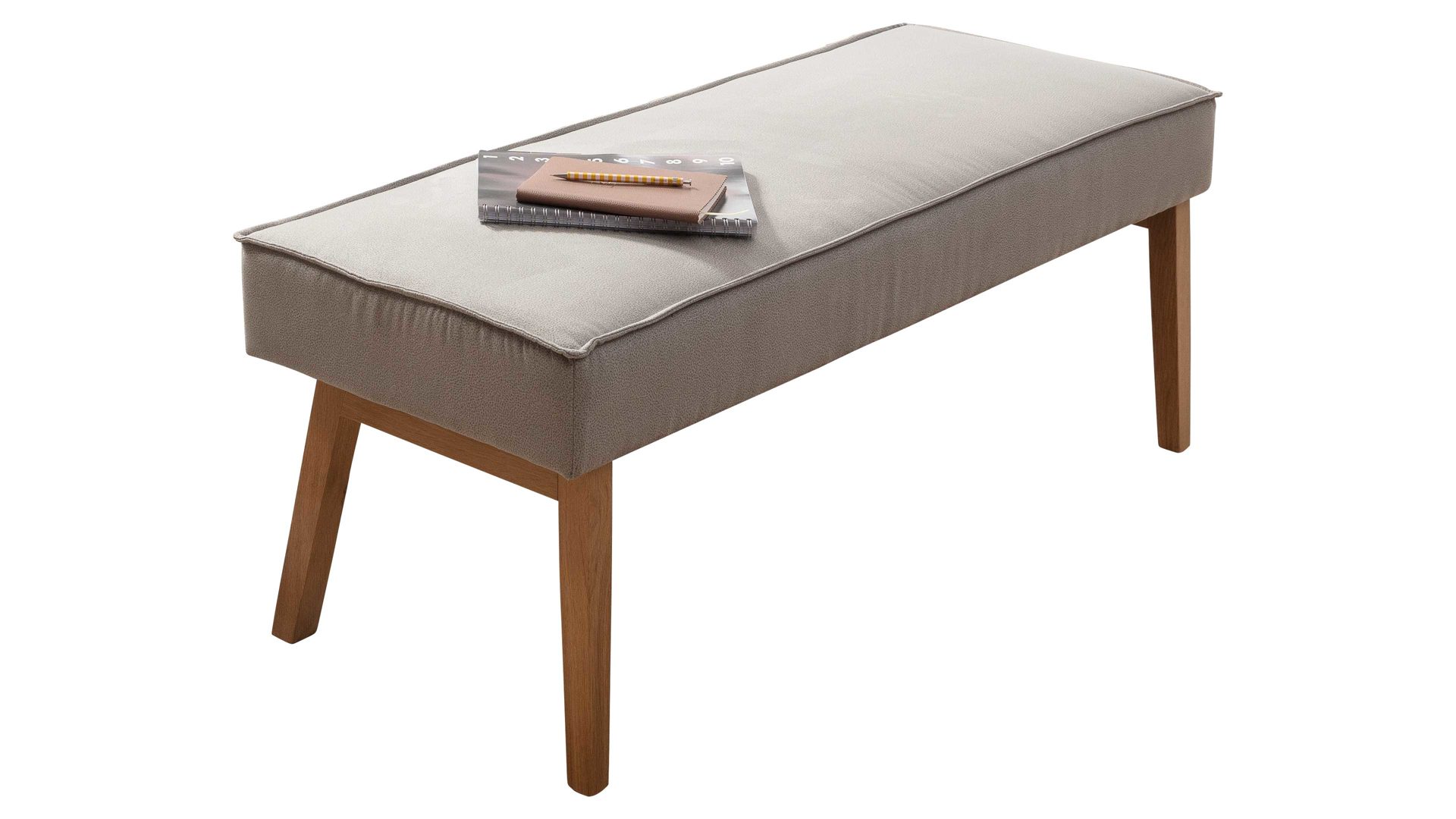 Die Polsterbank Lagos begeistert mit den hochwertigen Materialien, der erstklassigen Verarbeitungsqualität, dem stilvollen Design und dem hohen Komfort. Als stabile Basis fungiert ein lackiertes Eichenholzgestell, das natürlichen, warmen Charme verströmt und hervorragend mit dem hellgrauen Stoffbezug harmoniert. In Kombination sorgen die Materialien und Farben für eine moderne und gemütliche Ausstrahlung. Einen gelungenen Akzent setzt die umlaufende Ledernaht.