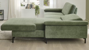 olivgrüner Feincordbezug und mattschwarze Metallfüße