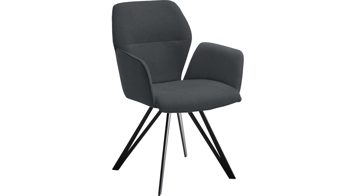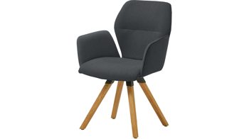 Dabei harmoniert der Armlehnstuhl in seiner sanften Formensprache mit zahlreichen Einrichtungsstilen: Dafür sorgt der dunkelgraue Stoffbezug Town 33, der die gesamte Sitzschale inklusive der bequemen Armlehnen weich umhüllt. Die schwarz lackierten Holzfüße fließen stimmig in das Gesamtbild ein. Ob als Esszimmerstuhl oder für erholsame Momente im Lounge-Bereich und Wohnzimmer: Das Modell Aura ist der perfekte Allrounder.