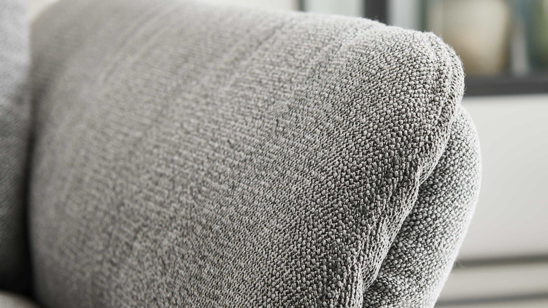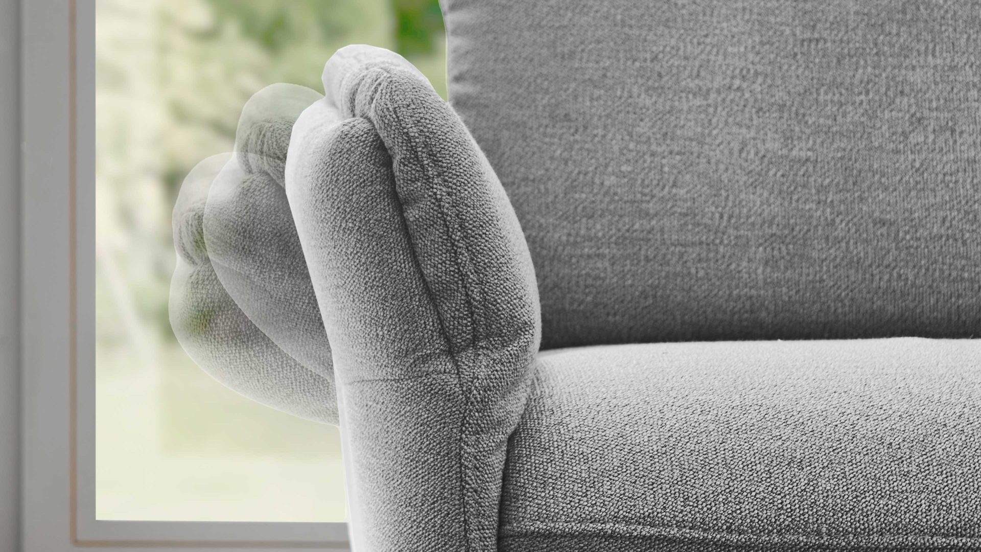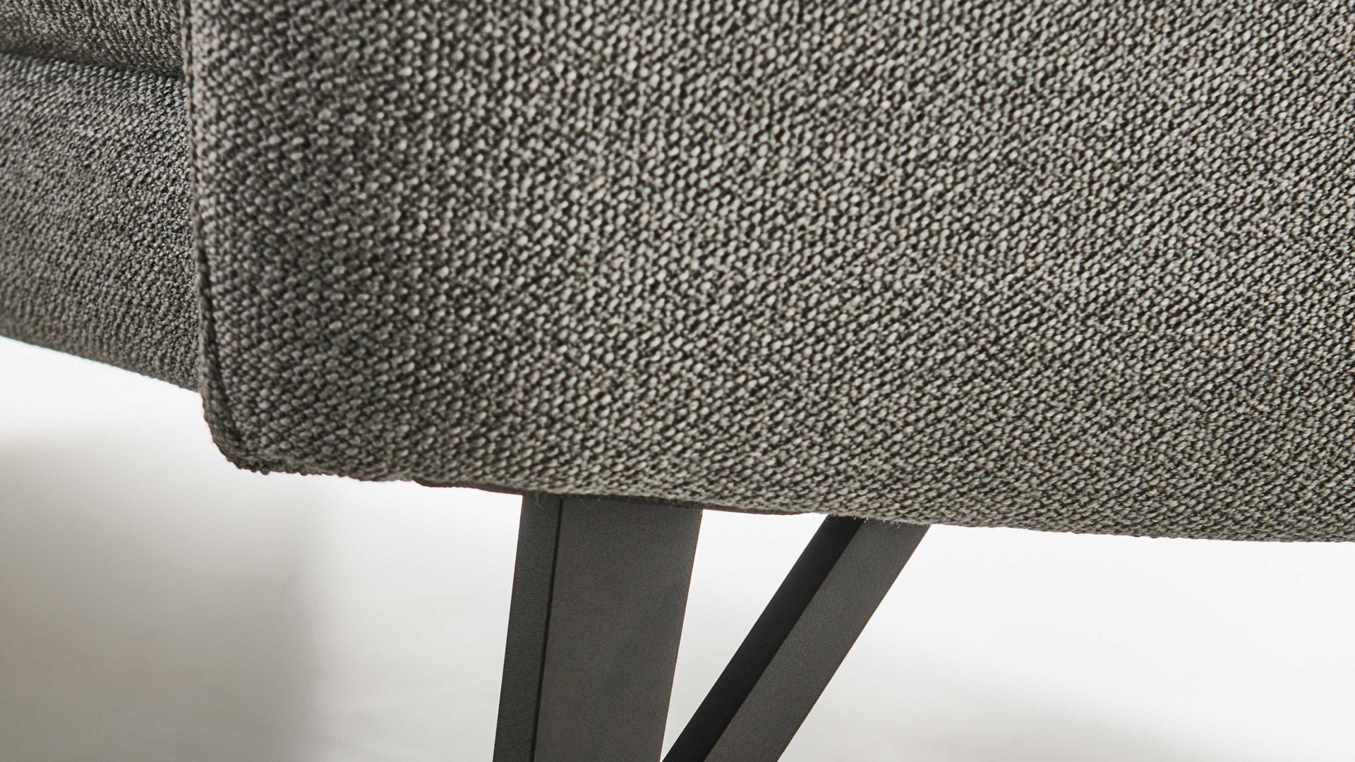 gletscherfarben melierter Strukturbezug und anthrazitfarben pulverbeschichtete Metallfüße
