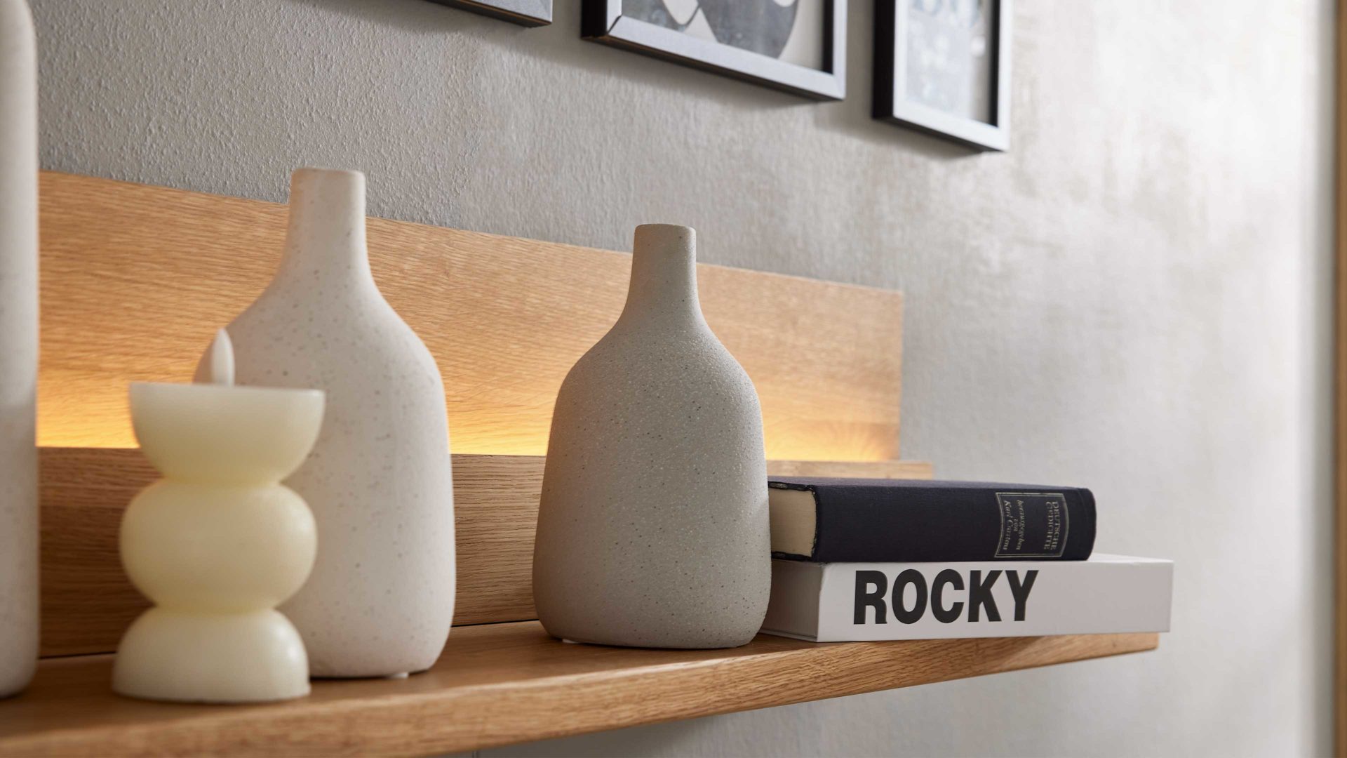 Streifenbeleuchtung für Sideboard und Wandregal aus der Interliving Wohnzimmer Serie 2027 – stilvolle Rückwandbeleuchtung mit warmweißem LED-Licht
