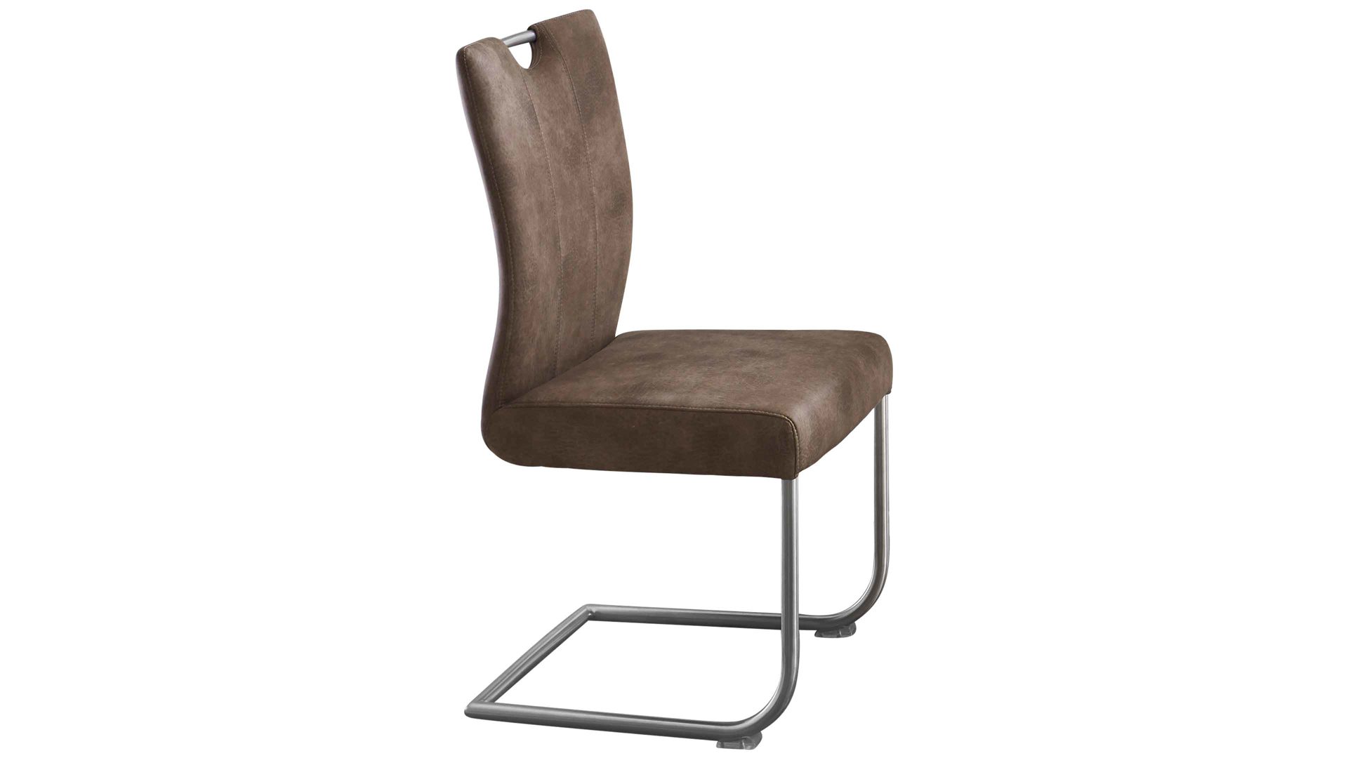 Er besteht aus hochwertigen Materialien, ist exzellent verarbeitet und präsentiert sich zudem modern und stilvoll designt. Durch die gelungene Kombination aus einem gebürsteten Edelstahl-Rundrohrgestell mit einem steinfarbenen Mikrofaserbezug strahlt der Esszimmerstuhl puristische Eleganz aus.