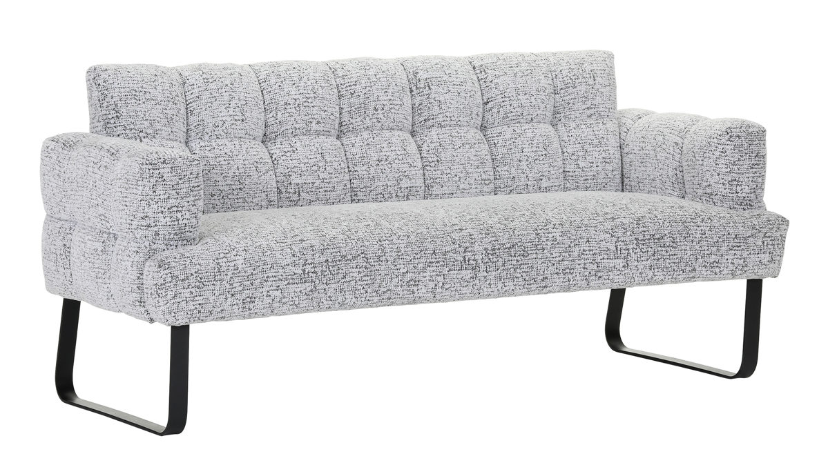 hellgrauer Chenillebezug, kombiniert mit schwarzen Metallkufen
