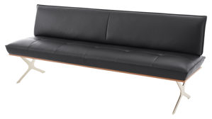 die Rückenlehne ist glatt bezogen, die Sitzfläche gesteppt und bequem mit Polyschaum auf Wellenunterfederung gepolstert