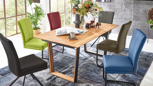 Bei Cloudy handelt es sich um ein individuell planbares Möbelprogramm bestehend aus Esstischen und dazu passenden Esszimmerstühlen. Die Tische sind in zwei Holzausführungen, zwei Gestellvarianten sowie drei Größen erhältlich. Optional gegen Mehrpreis stehen sie auch mit praktischer Auszugfunktion zur Wahl.