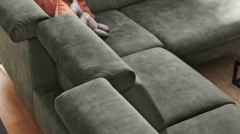 moosfarbener Velours Amira & schwarze Metallfüße - Stellfläche ca. 346 x 227 cm