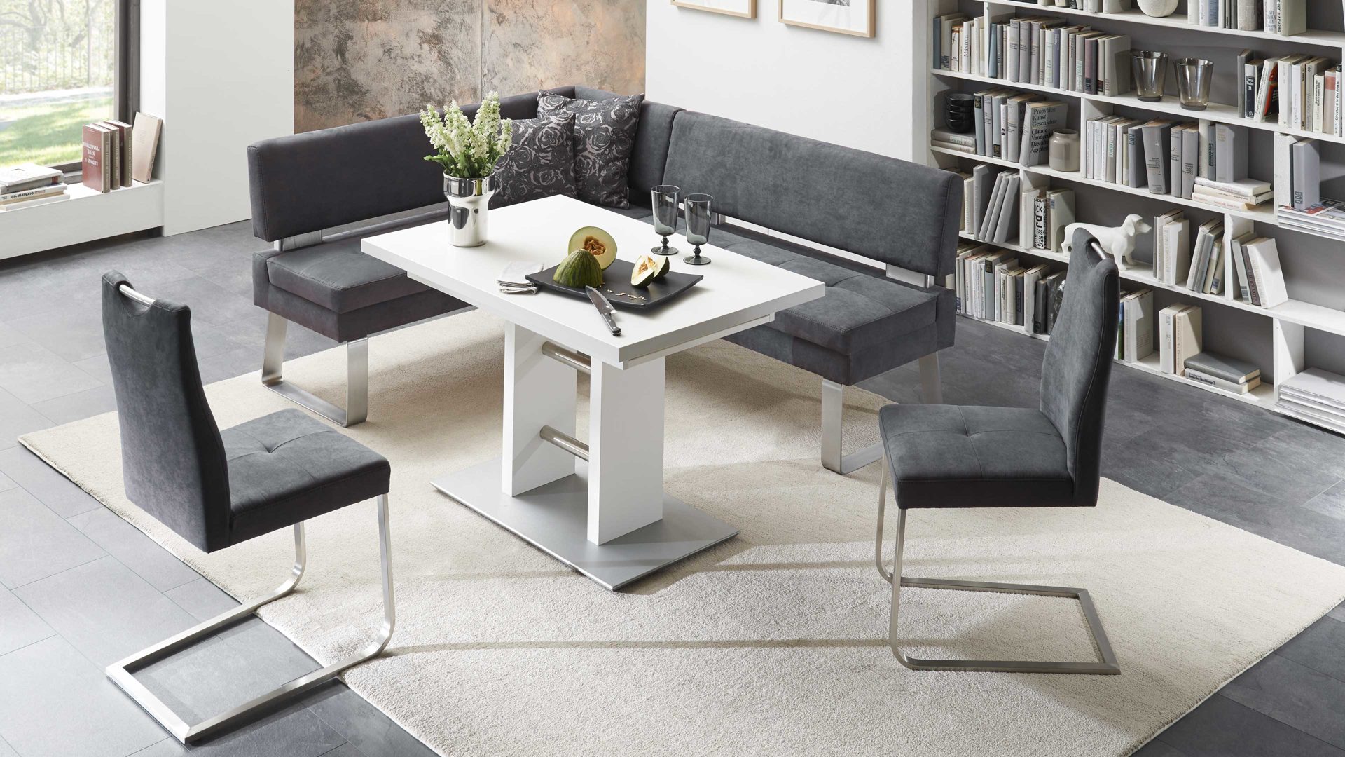 Auch funktional weiß der Tisch auf ganzer Linie zu überzeugen. Neben der ausgeprägten Stabilität der Materialien begeistert insbesondere die Option, den Esszimmertisch bei Bedarf im Handumdrehen zu vergrößern - durch den Synchronauszug über die beiden innenliegenden Einlegeplatten, die jeweils ca. 50 cm breit sind. Diese Verlängerungsfunktion ist vor allem dann vorteilhaft, wenn Sie einige Gäste zum Essen empfangen oder aus anderen Gründen mehr Platz auf dem Esstisch benötigen.