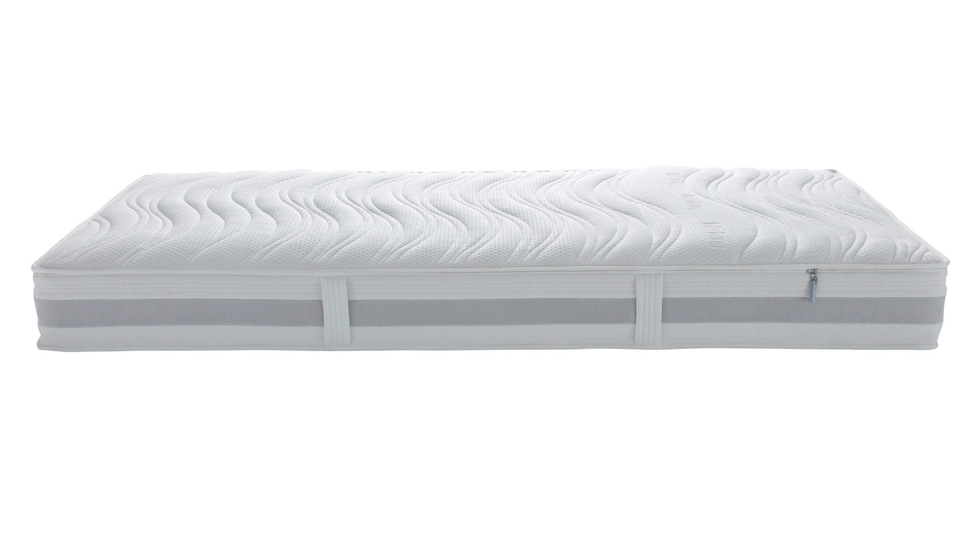 Im Kern arbeitet ein 7-Zonen-AQUAPUR®-Taschenfederkernsystem mit rund 1.000 einzeln verpackten Federn (bezogen auf ca. 100 x 200 cm). Diese sorgen für eine besonders präzise Körperanpassung und gezielte Druckentlastung – von der Schulter bis zum Becken. Ergänzt wird das System durch eine offenporige AQUAPUR®-Schaumplatte unter dem Federkern, die die Luftzirkulation fördert und für ein frisches, atmungsaktives Schlafklima sorgt.