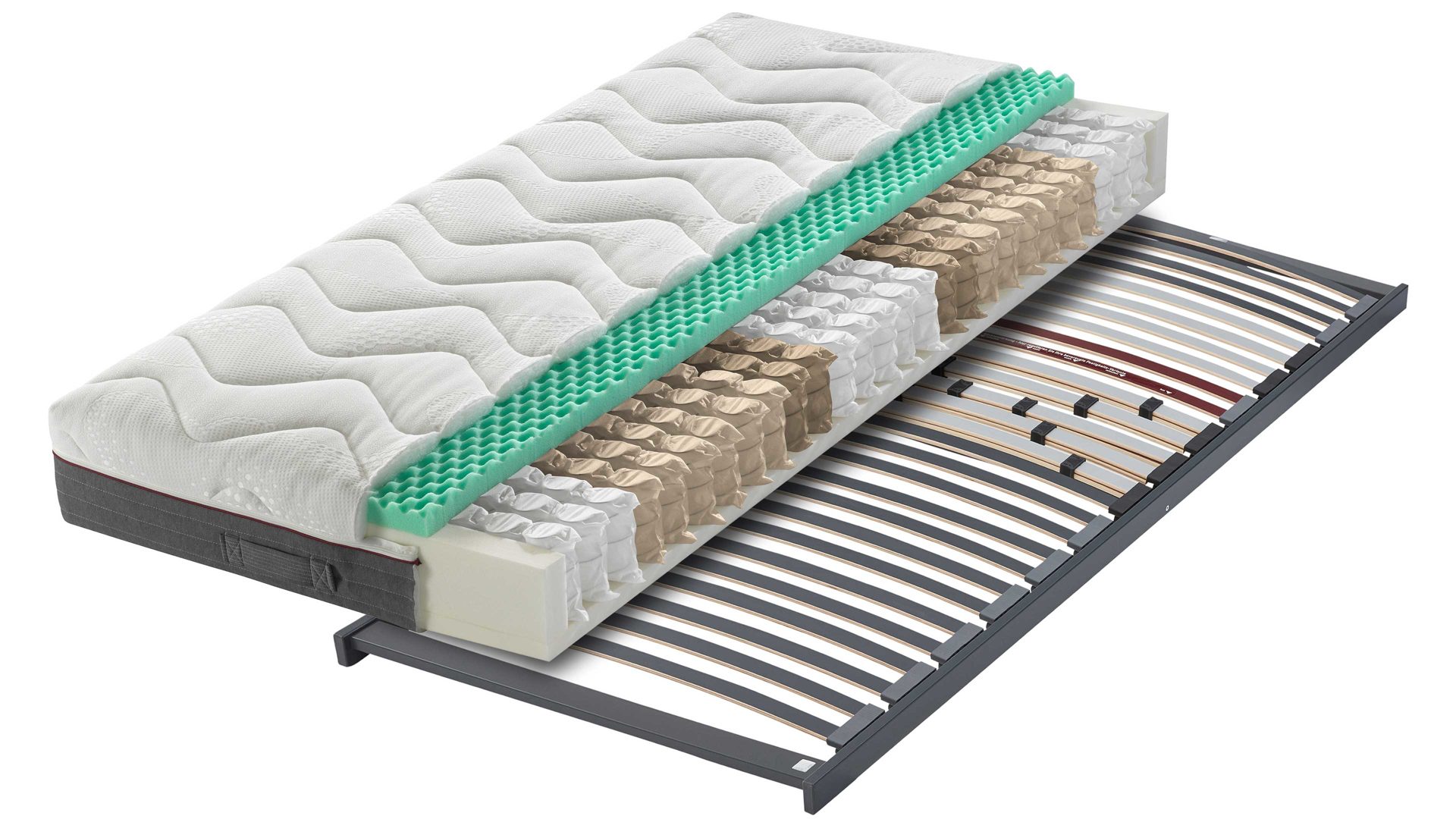 Die einstellbare Beckenzone ermöglicht dir eine persönliche Anpassung an deine Schlafbedürfnisse. Die selektive Schulterabsenkung sorgt dafür, dass deine Schultern optimal einsinken und die Halswirbelsäule entlastet wird. Der Lattenrost ist ca. 90 x 200 cm (BxL) groß und verfügt über eine Rahmenhöhe von ca. 50 mm – optimal abgestimmt auf die Matratze im Set. Zusätzlich genießt du die vom Hersteller gewährte 5 Jahre Herstellergarantie.