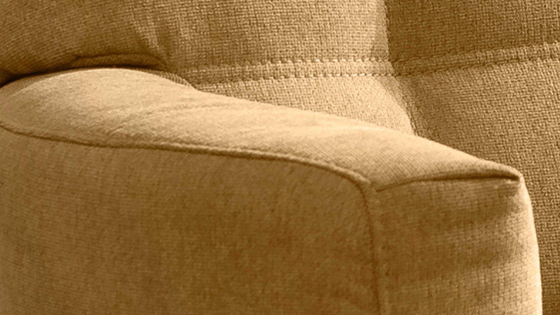 Mit dem honigfarbenen Bezug, der edel gesteppten Sitzfläche und dem mattschwarzen Metallfußring präsentiert sich der KAWOO Relaxsessel SE 53 modern, elegant und gemütlich.