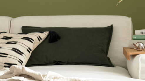 Kissenbezug aus mattem Samt mit umlaufender Steppnaht und verdecktem Reißverschluss