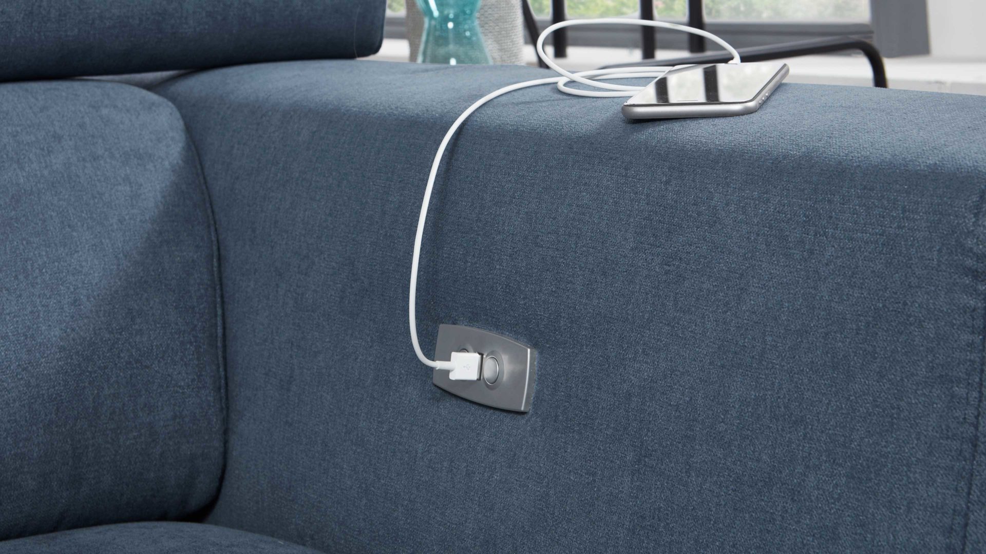 Des Weiteren können Sie zwischen zwei Fußfarben wählen und die Polsterecke ist standardmäßig mit einer Kopfteilverstellung ausgestattet.