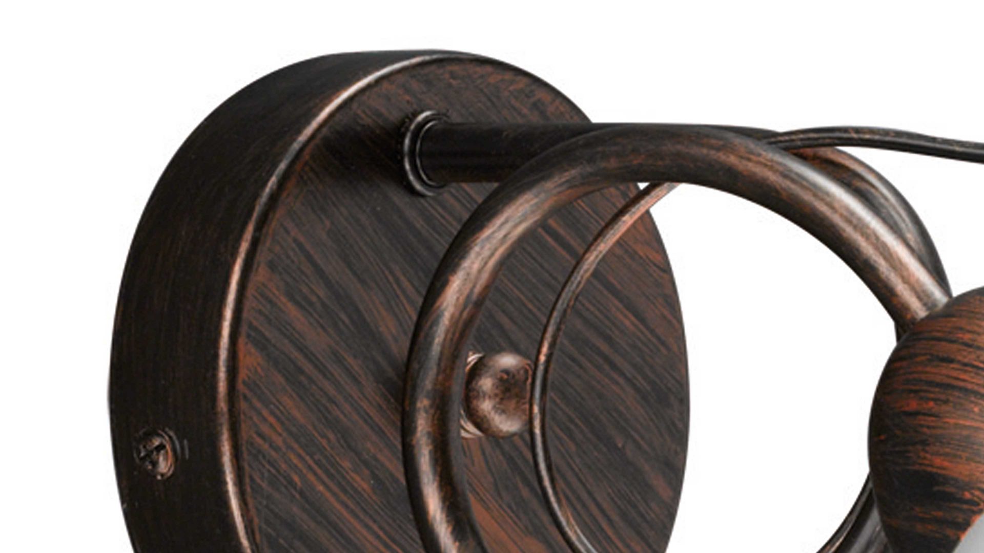 Mit der Kombination aus antik-rostfarbenem Metall und einem edel-alabasterfarbenen Glas-Lampenschirm strahlt die Wandleuchte besondere Eleganz aus.