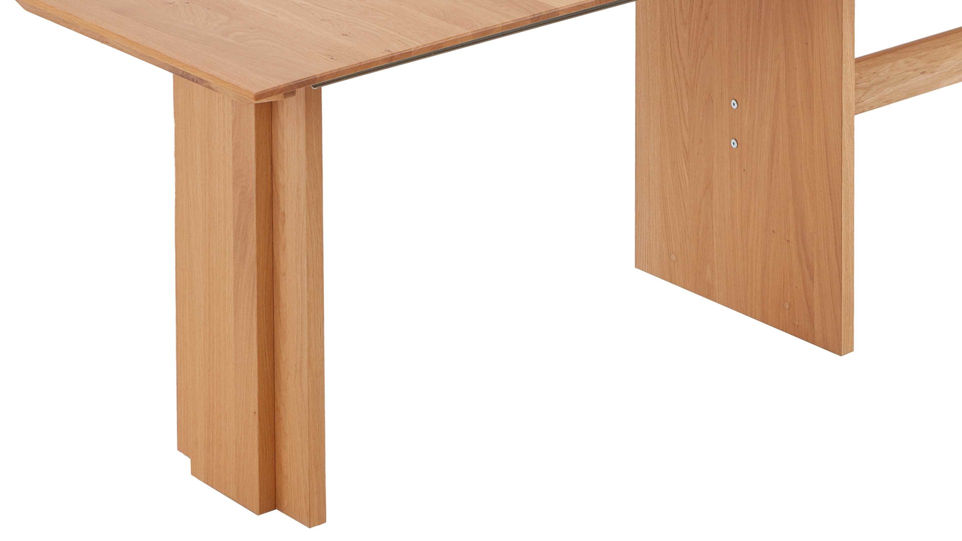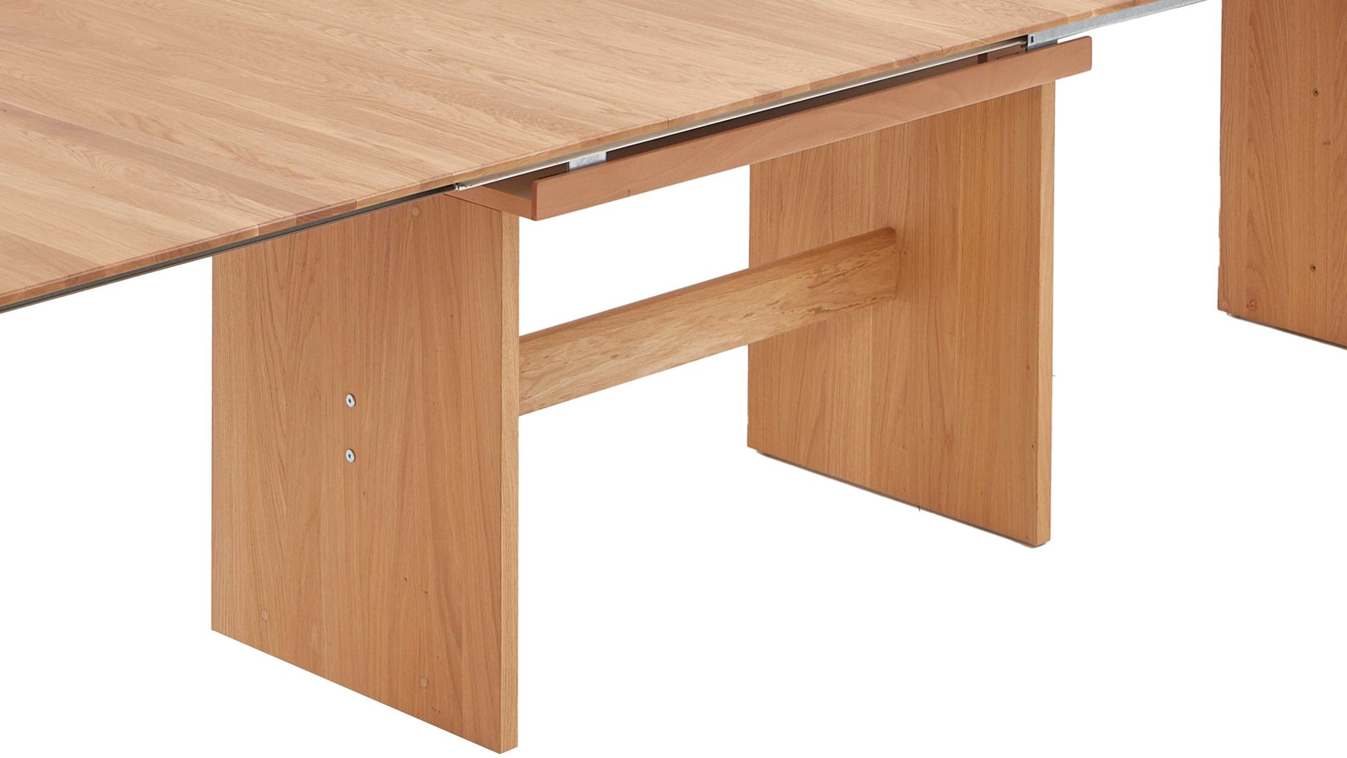 Der NIEHOFF Auszugtisch Bornholm überzeugt mit seiner hohen Materialqualität, dem modernen Design und der praktischen Funktion. Er kombiniert ein furniertes Wildeiche-Wangengestell mit einer Tischplatte aus massiver Wildeiche. Damit verkörpert der Esszimmertisch Natürlichkeit. Diesen wohnlichen, warmen Charme überträgt er auch ins Esszimmer beziehungsweise in die Küche.