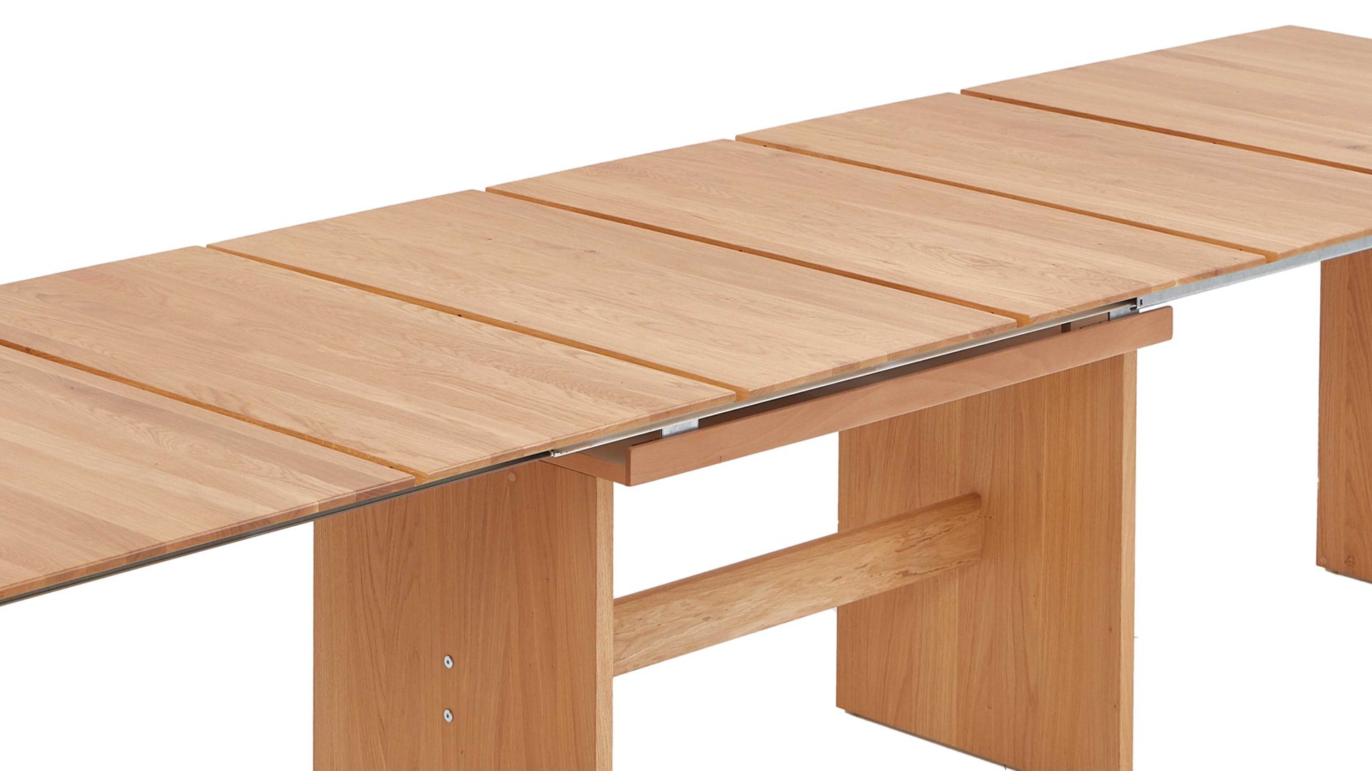 Zu den Highlights des Tisches gehören das edle Facettenprofil der Tischplatte sowie das Hydro-UV-Hartwachs-Ölfinish, das die Oberflächen optisch und funktionell aufwertet. Dank der vier innenliegenden Einlegeplatten mit einer Breite von jeweils ca. 40 cm lässt sich die Länge der Tischplatte bei Bedarf einfach verdoppeln. Die Maße des Esstisches belaufen sich auf ca. 160 (320) x 95 cm (BxL).