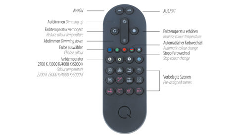 mit Infrarot-Fernbedienung dimmbar und mit der CCT-Lichtsteuerrung von warmweiß zu tageslichtweiß verstellbar