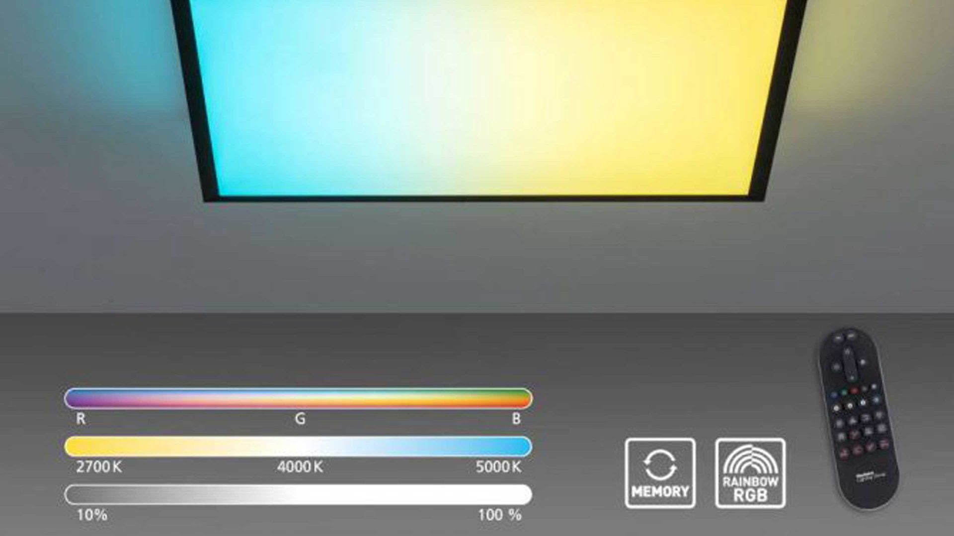 | Verstellbarkeit und Funktion: | dimmbar Fernbedienung CCT | Lichtmanagement Memoryfunktion Farbwechsler | |