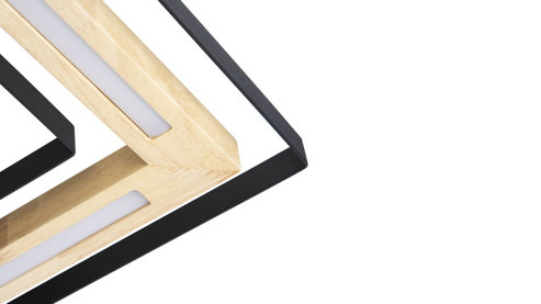 mattschwarzes Metall und naturfarbenes Bambusholz