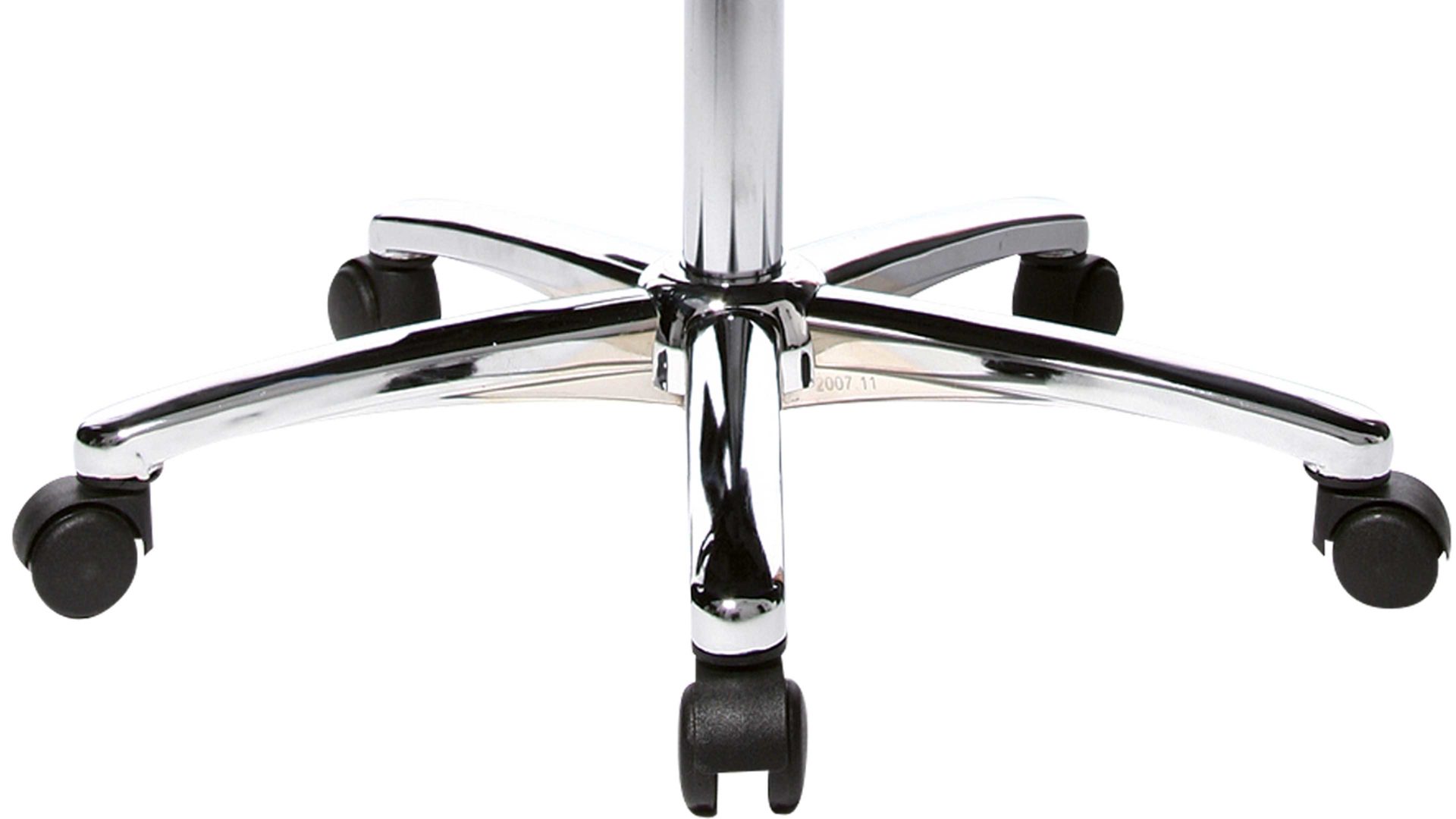 Das deutsche Qualitätsprodukt ist mit einem bequemen Flachsitz und der besonderen Toplift Sitzhöhenverstellung ausgestattet und passt sich dadurch optimal an jede Körpergröße an. Der dunkelrote Sitzbezug und das verchromte Stahlfusskreuz überzeugen durch moderne Optik.
