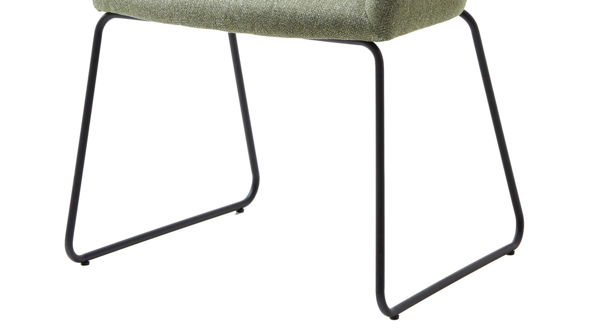 Darüber hinaus weiß er in puncto Komfort zu überzeugen. Ein schwarzes Stahldraht-Kufengestell bildet die robuste Basis. Das widerstandsfähige Material sorgt für die nötige Stabilität und die klassische Farbgebung bringt edles Flair in den Raum. Attraktiv abgerundet wird der Polsterstuhl durch den blassgrünen Webstoffbezug. Die außergewöhnliche Farbe wirkt elegant und schafft durch die helle Nuance einen interessanten Kontrast zum Gestell. Einen feinen Akzent setzt die Steppnaht im Rücken des Schalensitzes.