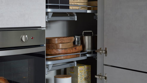 Zur Küchenausstattung gehören leistungsstarke Einbaugeräte von privileg, die Technik und Design in Einklang bringen. Der Kühlschrank PRC10VS2E punktet mit Energieeffizienzklasse E (Spektrum A bis G), während der Backofen PBWK3 NN5F IN mit Energieeffizienzklasse A+ (Spektrum A+++ bis D) überzeugt. Ergänzt wird die Ausstattung durch das autarke Glaskeramik-Kochfeld PCTACK6042IN sowie die kopffreie Dunsthaube DGHVP83LTK/1 mit Energieeffizienzklasse B (Spektrum A bis G). Diese Geräte fügen sich harmonisch ins Küchenkonzept ein und sorgen für zuverlässige Leistung – beim Kochen, Backen und Kühlen gleichermaßen.