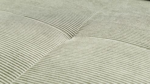 Das Ecksofa aus der Serie SOFAkultur SK 745 2.0 kombiniert mattschwarze Metallfüße mit einem olivgrünen Feincordbezug - und präsentiert sich somit modern-elegant designt.