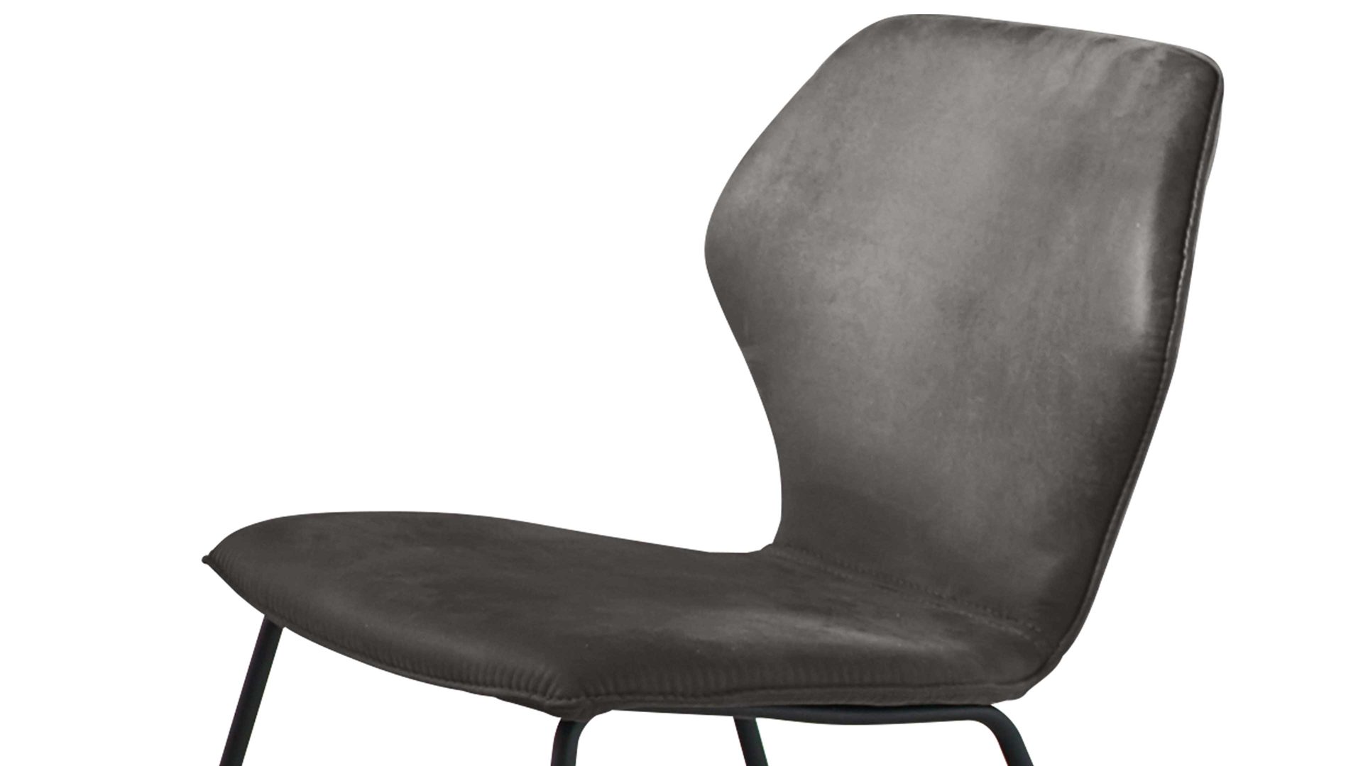 Er verfügt über einen anthrazitfarbenen Stoffbezug, der mit nahezu jedem Einrichtungsstil harmoniert. Ein schwarzes Eisen-Kufengestell verleiht ihm zuverlässige Stabilität. Bei Maßen von ca. 47 x 83 x 41 cm (BxHxT) weist der Esszimmerstuhl eine Sitzhöhe von ca. 48 cm sowie eine Sitztiefe von ca. 48 cm auf.
