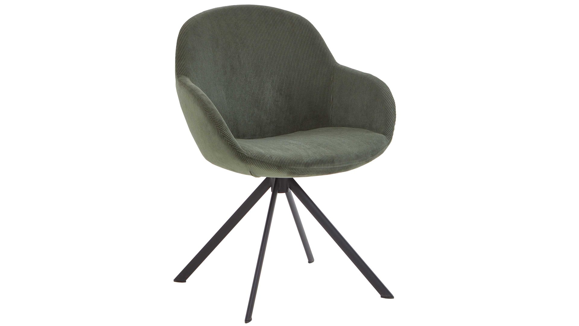 Der hochwertige NIEHOFF Armlehnstuhl Dacapo verkörpert moderne Eleganz und Gemütlichkeit. Mit dem mattschwarz lackierten Stativgestell aus robustem Eisen sowie dem trendigen grünen Cordbezug überzeugt er sowohl optisch als auch qualitativ. Dank der Ergo-Schale mit Formschaum bietet der Designerstuhl für das Esszimmer extra hohen Sitzkomfort.