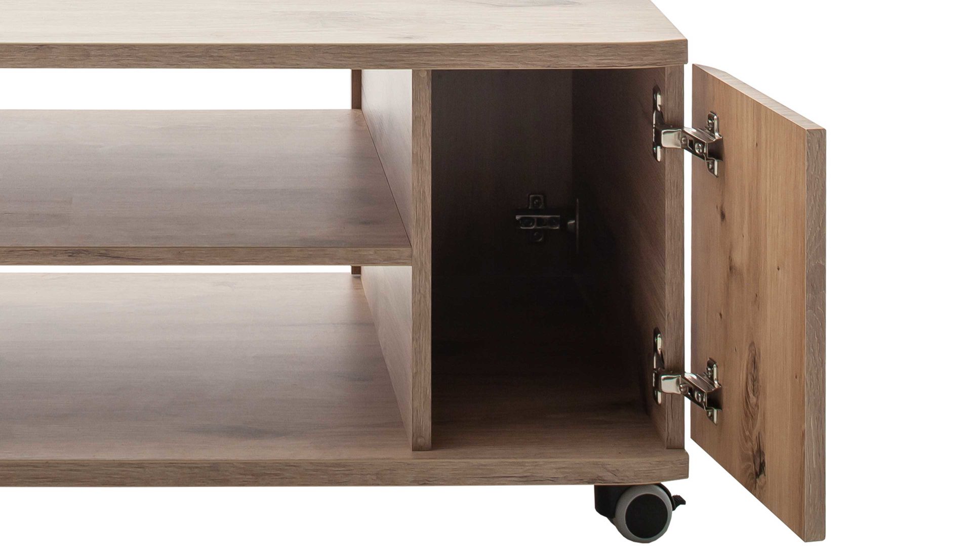 Zu den Highlights der Serie gehören die edlen Klarglasböden sowie die Schubladen mit Dämpfung. Letztere gewährleistet ein besonders leises und damit sehr angenehmes Schließen. Optional sind manche Wohnzimmermöbel des Programms mit einer LED-Beleuchtung ergänzbar.